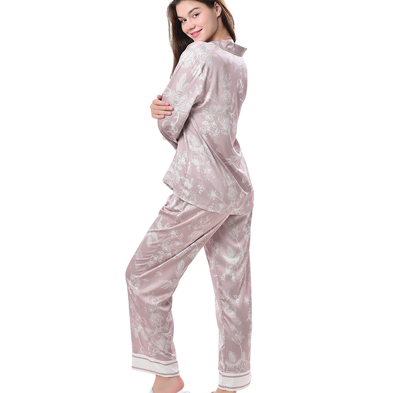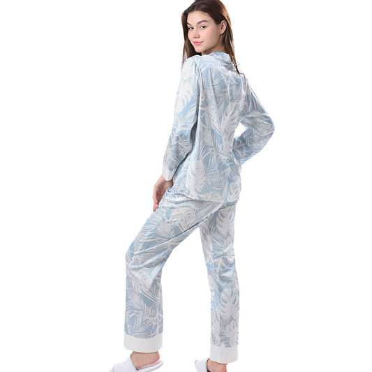 Pajamas Set Long sleeve and Pants Sleepwear Soft and Comfy Button Down Loungewear Relaxed Fit Big Leave Brown