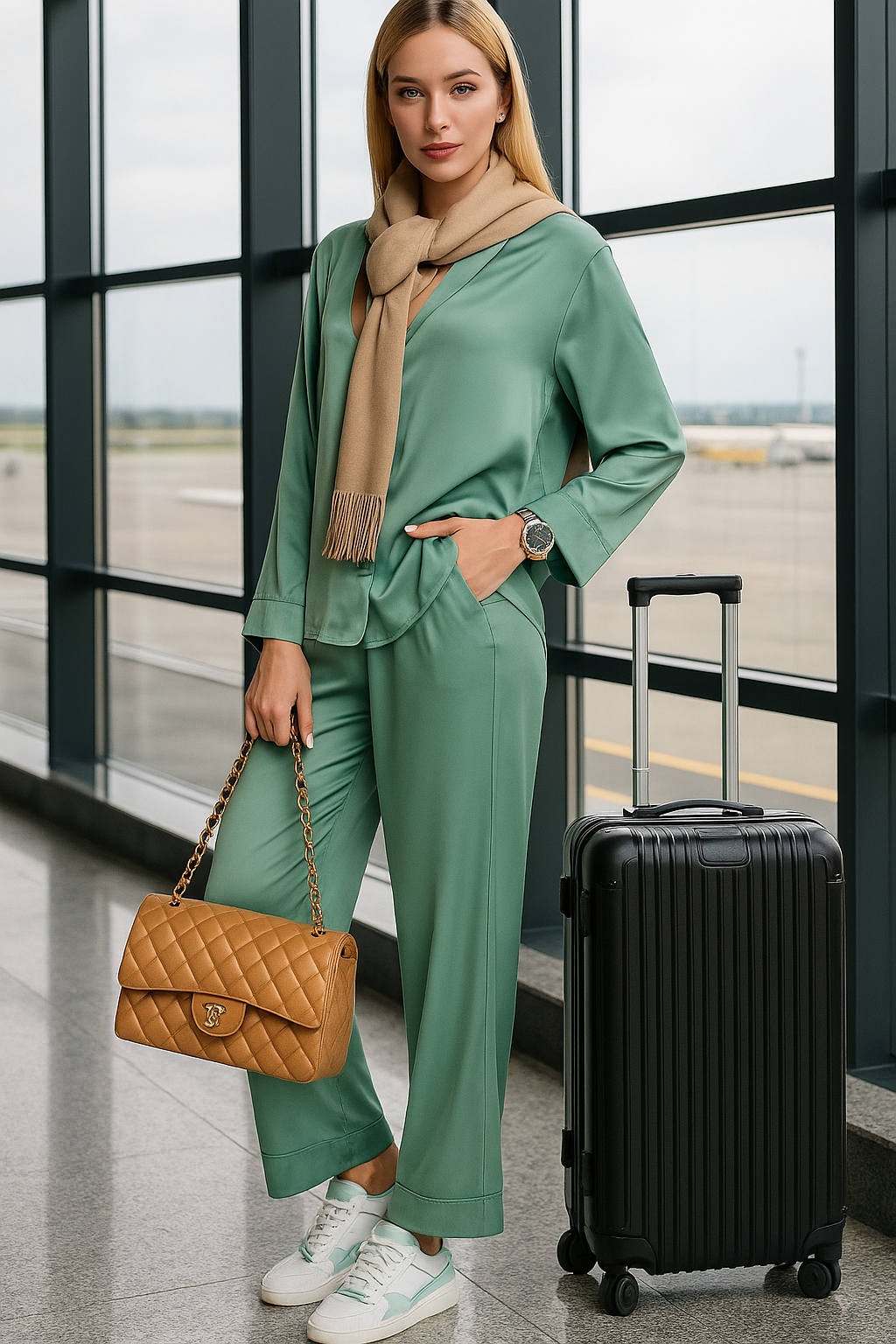 Ensemble de pyjama à manches longues et pantalon Vêtements de nuit Doux et confortable Boutonné Vêtements de détente Coupe décontractée Fleurs marron