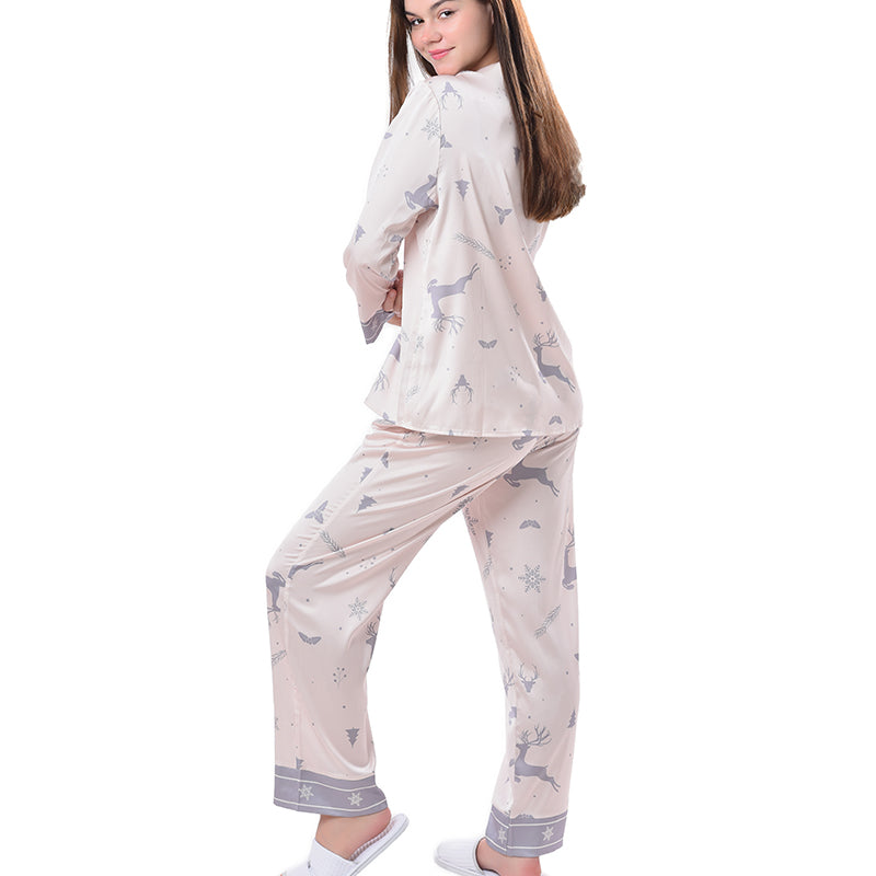 Pajamas Set Long sleeve and Pants Sleepwear Soft and Comfy Button Down Loungewear Relaxed Fit Xmas